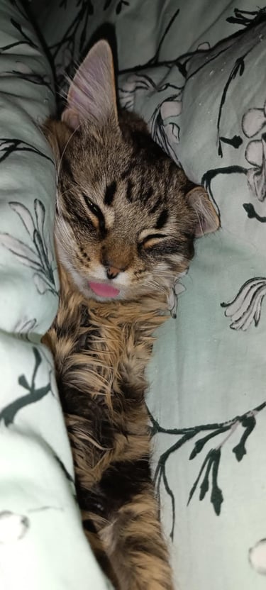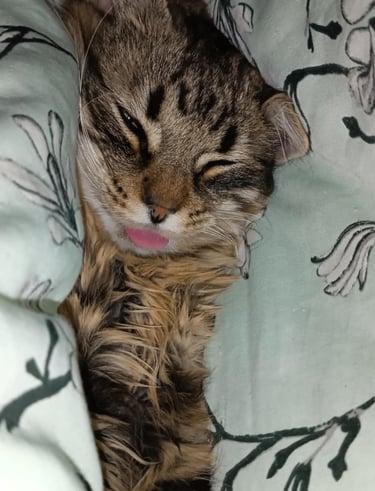 Nors jis turi tik tris pėdutes, tai nė kiek nesumažina jo energijos – priešingai, atrodo, kad gamta pamiršo įjungti greičio ribotuvą. Šitas katinas juda taip greitai, kad kartais net atrodo, jog ketvirtoji koja tiesiog tapo nematoma dėl per didelio greičio.